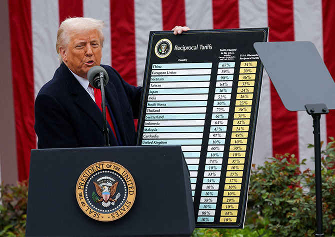 트럼프 대통령은 백악관 로즈가든에서 행한 연설에서 이날을 "해방의 날"로 선언하며 한국에 25%, 중국 34%, 유럽연합(EU) 20%, 일본 24% 등 국가별 상호관세율을 공개했다.