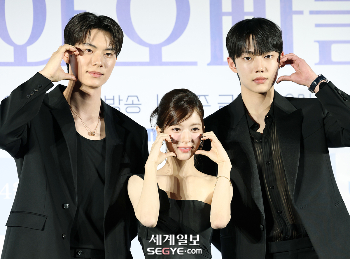 배우 이채민, 노정의, 조준영(사진 왼쪽부터)이 3일 오후 서울 용산 CGV에서 열린 MBC 새 금토드라마 '바니와 오빠들'의 제작발표회에 참석해 포즈를 취하고 있다.