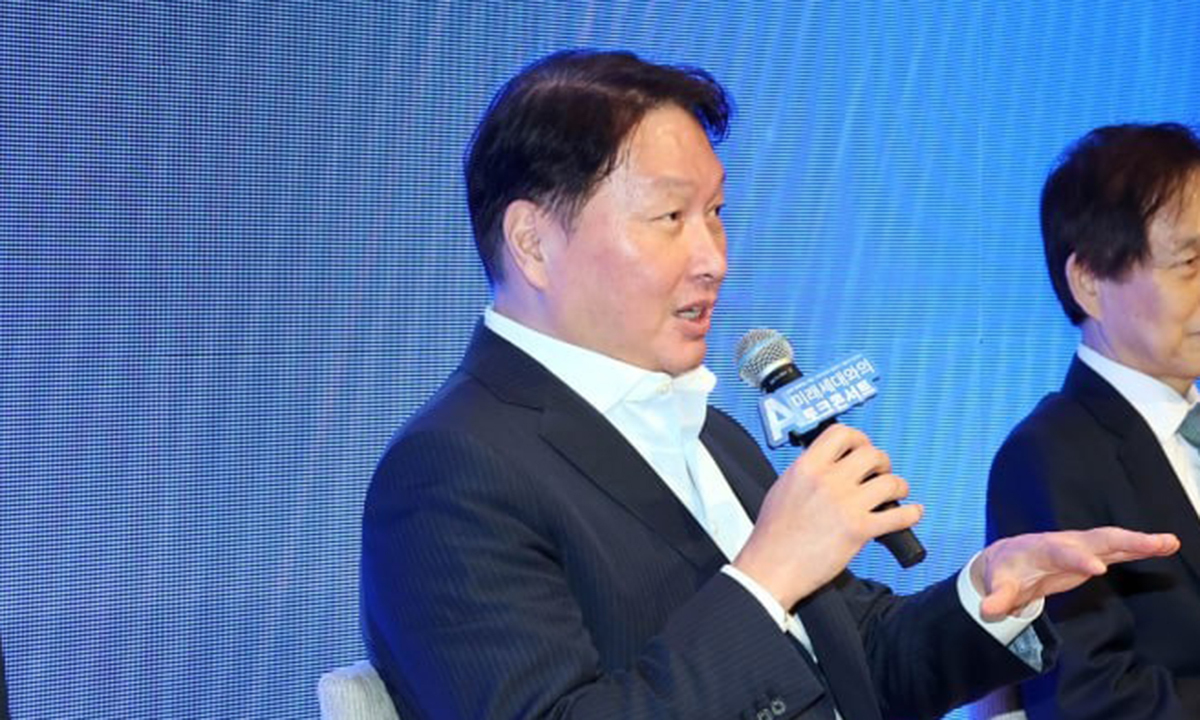 최 회장은 미국 도널드 트럼프 행정부의 압박 또한 자체 경쟁력으로 이겨내야 한다는 입장이다. 그는 “트럼프가 관세를 올려 공장을 한국이 아닌 다른 국가로 옮기는 상황이 생기더라도 백그라운드 기술이 없으면 다른 나라에서 (성공)할 수 없다. AI와 제조업을 결부한 경쟁자들이 공장을 만들 것이기 때문”이라며 “얼마나 독보적이냐가 경쟁력”이라고 말했다. 이어 “SK도 글로벌 전쟁을 하려면 힘들고, 상대의 목을 치려면 팔을 내어준다는 각오로 도전하고 쟁취하려고 한다”고 덧붙였다.