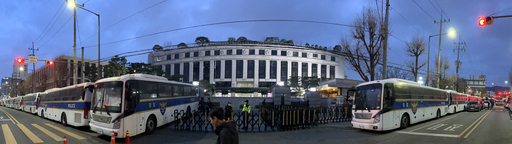 윤석열 대통령에 대한 탄핵심판 선고를 하루 앞둔 3일 서울 종로구 헌법재판소 앞에 경찰버스로 만든 차벽이 설치돼 있다. 경찰은 전날 헌재 반경 150m 구역의 출입을 통제하는 진공상태 조치를 완료했다. 지하철 3호선 안국역이 폐쇄됐고 일대 기업과 은행 점포, 상점들이 문을 닫으면서 헌재 일대가 휴무 상태에 돌입한다.