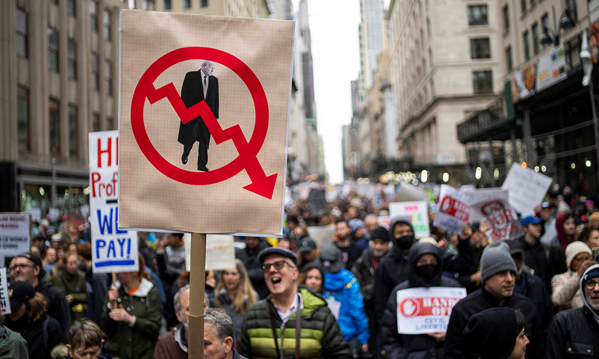 5일(현지시간) 도널드 트럼프 미국 대통령의 일방주의적 국정 운영에 반대하는 진보 진영 주도의 시위가 미국 전역에서 벌어졌다.