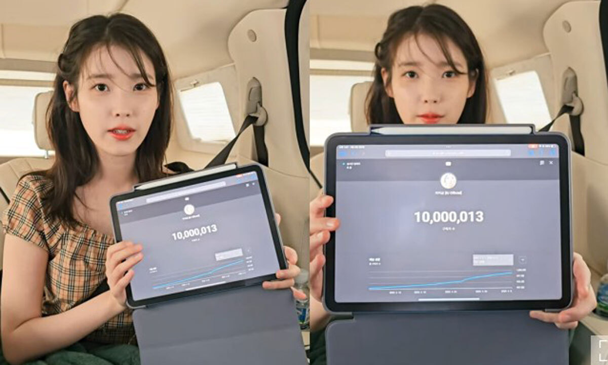 영상에서 아이유는 ‘9,999,997’인 구독자를 실시간으로 바라보며 1000만 달성을 지켜봤다.