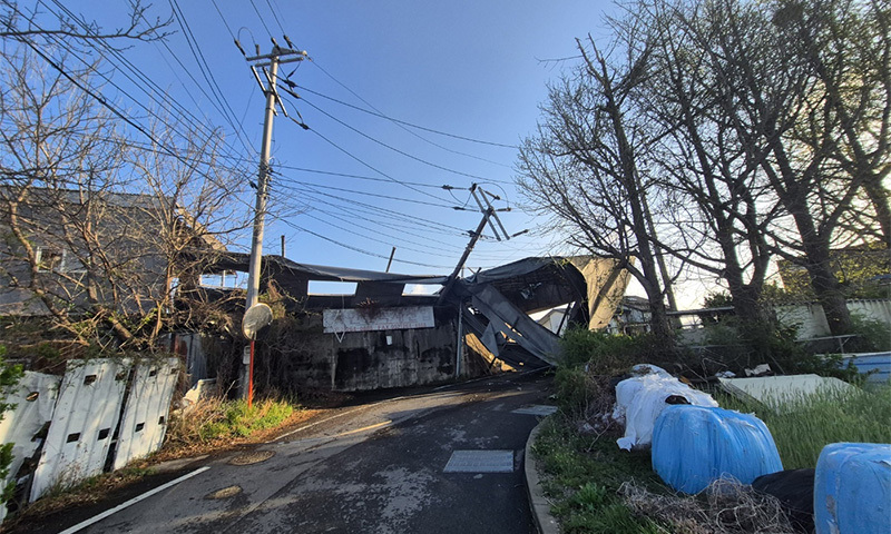 울산에선 강풍에 뜯긴 지붕 패널이 날아가 전신주를 덮치면서 인근 55세대가 정전 피해를 입었다.