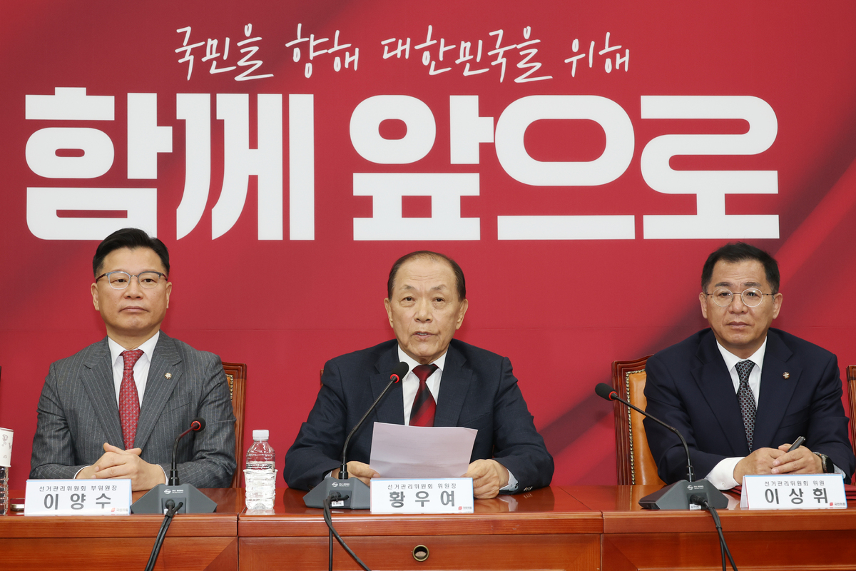 국민의힘 황우여 대선·경선 선관위원장이 16일 오전 서울 여의도 국회에서 열린 선거관리위원회의에서 발언하고 있다. 뉴스1
