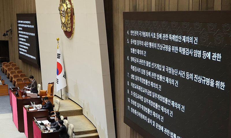 재표결 법안은 재적의원 과반수 출석, 출석의원 3분의 2 이상 찬성이 가결 요건이다.