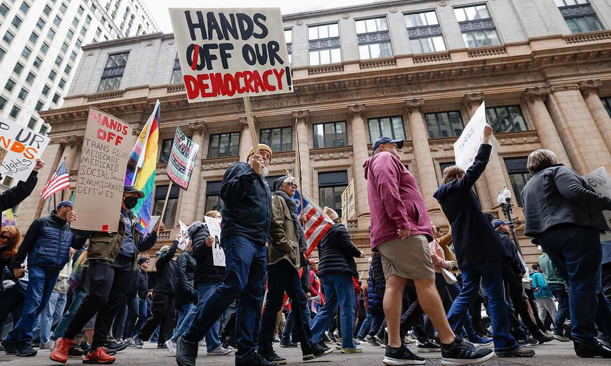 지난 5일 전국적으로 50만명 이상이 트럼프 대통령을 규탄하는 '핸즈오프'(Hands Off·손을 떼라) 시위에 참여한 데 이어 2주 만에 또다시 대규모 인파가 반(反)트럼프 시위에 합세했다.