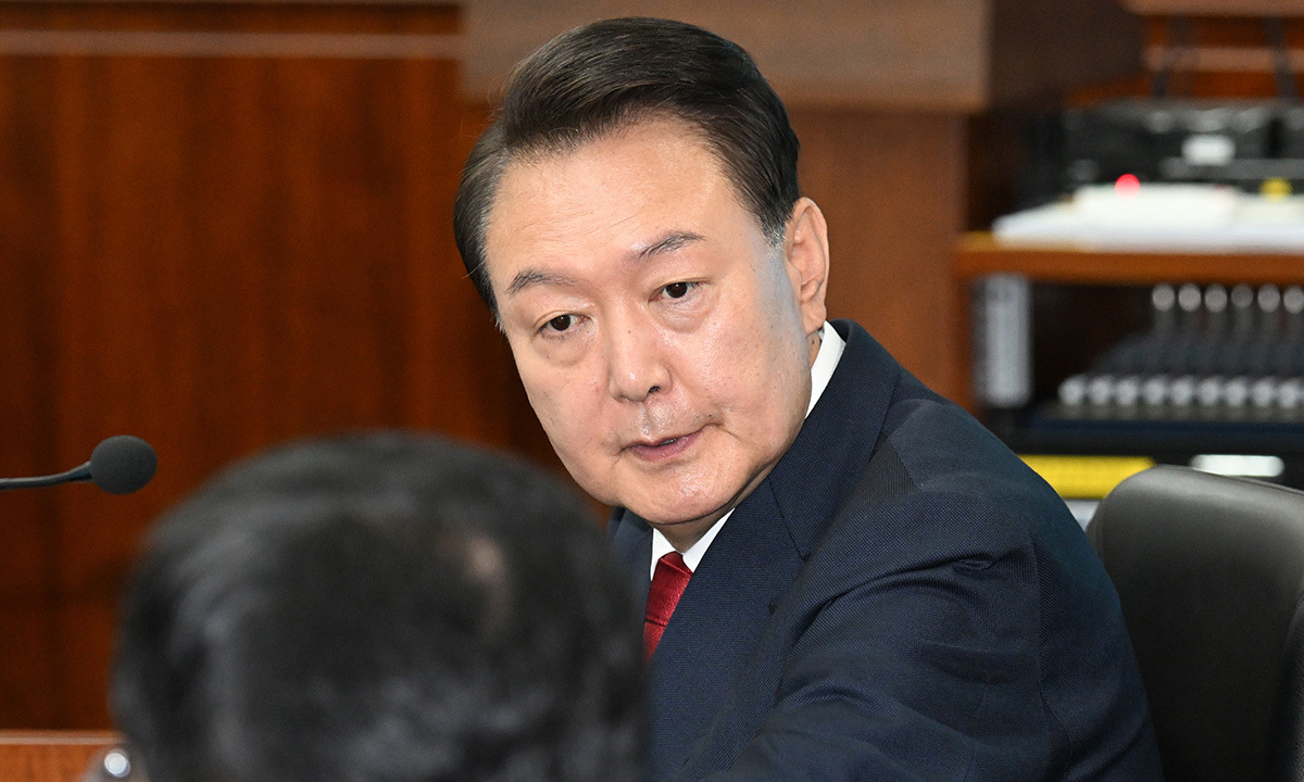윤 전 대통령은 오전 9시 57분께 법정에 들어서 둘째 줄 가장 안쪽자리 피고인석에 앉았다. 구속 피고인 등이 들어오는 피고인 전용 통로를 통해 입장했다.