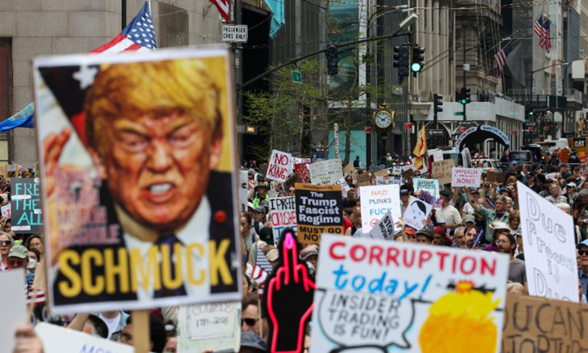 미 일간 워싱턴포스트(WP)와 영국 일간 가디언에 따르면, 토요일이자 독립전쟁 발발 250주년 기념일인 이날 수도 워싱턴 DC와 뉴욕, 시카고에서는 대규모 시위가 열렸고 각 주의 크고 작은 도시에서도 시위가 이어졌다.