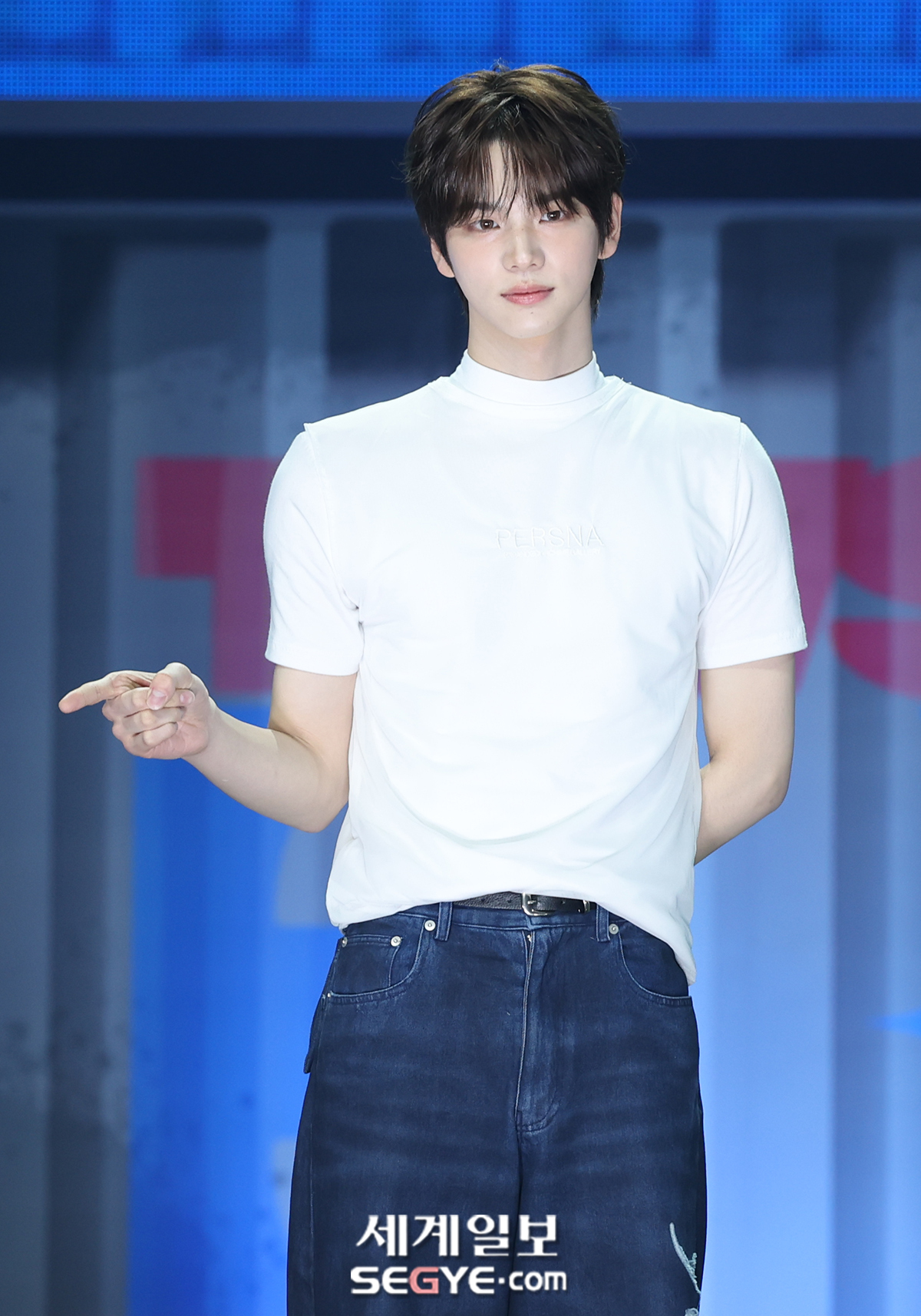 그룹 투어스 신유가 21일 서울 용산구 한남동 블루스퀘어에서 열린 미니 3집 '트라이 위드 어스'의 쇼케이스에 참석해 포즈를 취하고 있다.