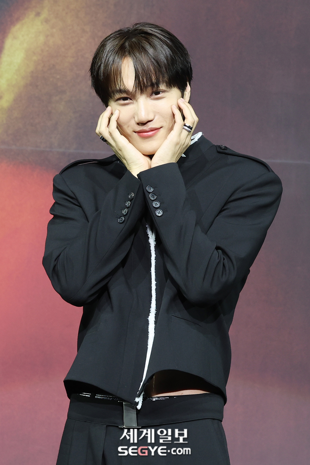 가수 카이가 21일 서울 광장동 예스24 라이브홀에서 열린 네 번째 미니앨범 '웨이트 온 미(Wait On Me)' 발매 쇼케이스에 참석해 포즈를 취하고 있다.
