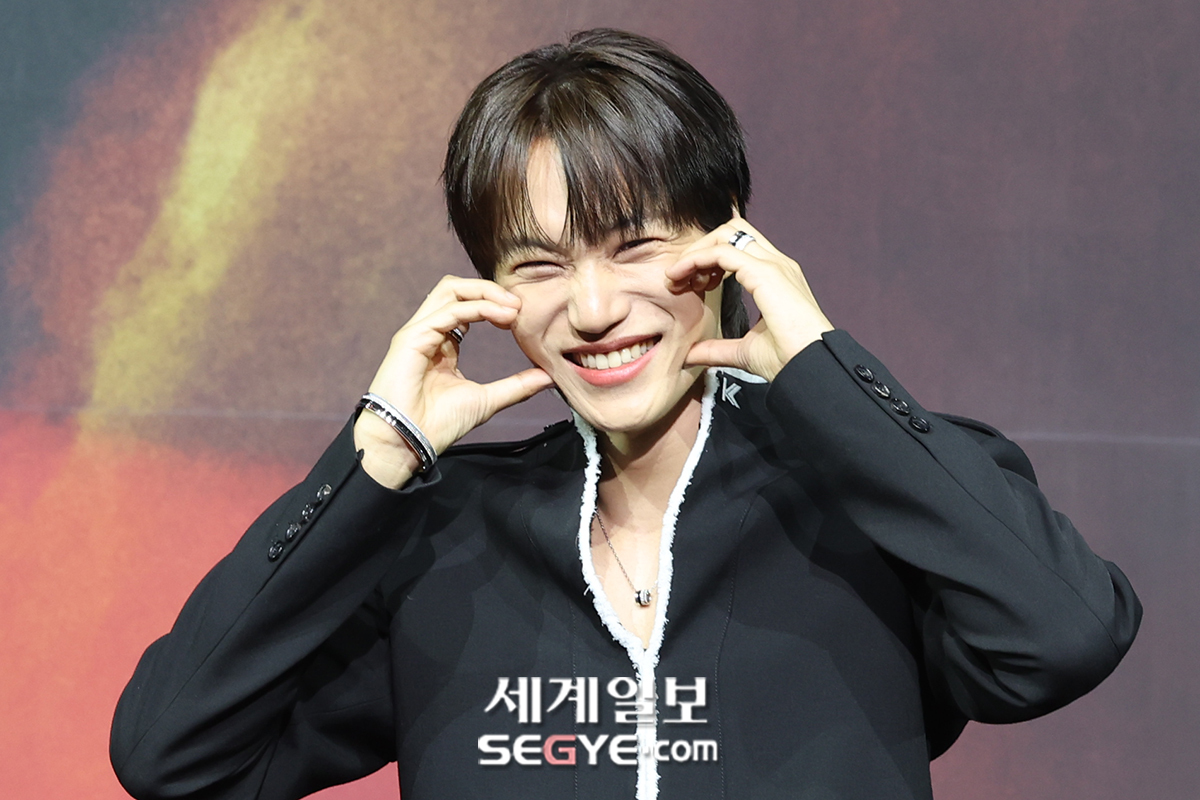 가수 카이가 21일 서울 광장동 예스24 라이브홀에서 열린 네 번째 미니앨범 '웨이트 온 미(Wait On Me)' 발매 쇼케이스에 참석해 포즈를 취하고 있다.