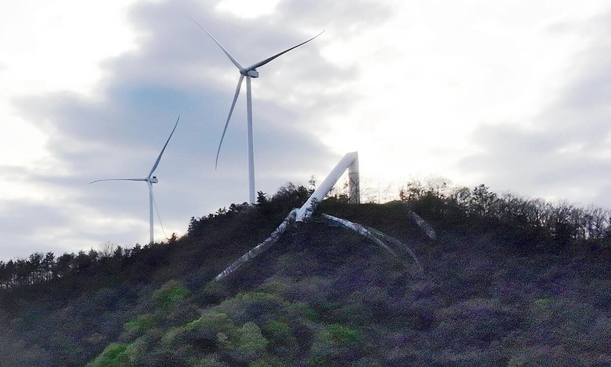 21일 전남 화순군에 따르면 이날 오전 2시50분쯤 화순군 도암면 우치리 화학산에 건설된 4.7MW(메가와트)급 풍력발전기 타워가 쓰러졌다.