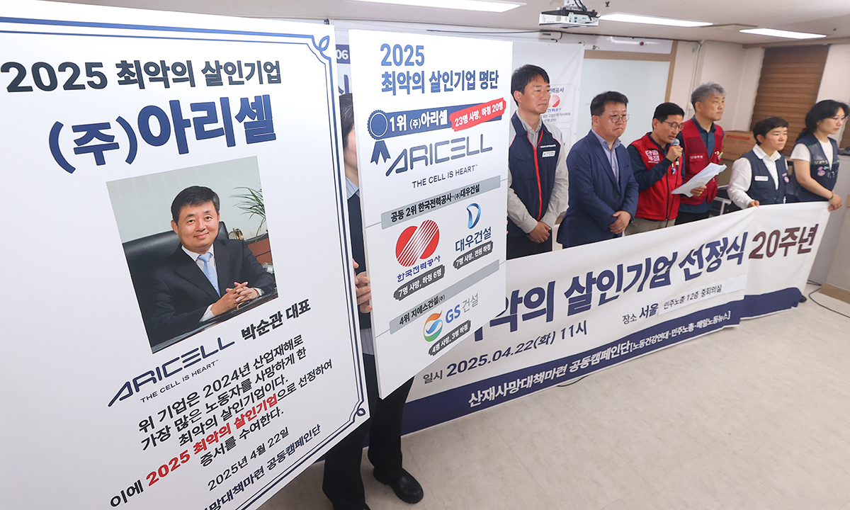 민주노총과 노동건강연대, 매일노동뉴스 등이 참여한 산재사망대책마련 공동캠페인단(캠페인단)은 22일 서울 중구 민주노총에서 기자회견을 열고 ‘2025년 최악의 살인기업’ 선정 결과를 발표했다. 노동계는 2006년부터 매년 가장 많은 산재사망사고가 발생한 기업을 선정해왔다.