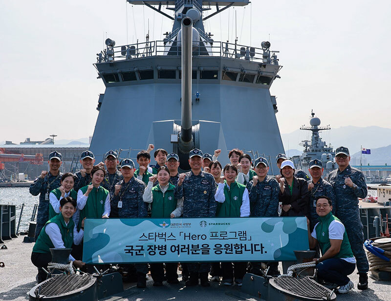 스타벅스는 지난해 4월부터 국군장병 취업박람회 지원을 시작으로 각 기관과 복지 혜택을 지원하는 업무 협약을 본격적으로 체결하면서 국군장병, 소방관, 경찰관을 히어로로 선정해 이들을 위한 응원과 지원 활동을 이어오고 있다. 스타벅스는 히어로 프로그램을 위해 지난해 9월 국방부와 협약을 맺고 △국군장병 51만명 대상 아메리카노 쿠폰 제공 △전방 부대 방문 음료와 푸드 전달 △취업박람회 참여 및 취업 상담 등을 지원하고 있다.