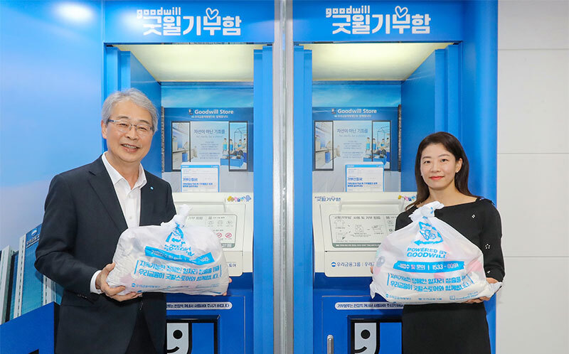 최근 우리금융은 15개 전 그룹사 임직원을 대상으로 기부 릴레이 캠페인을 벌여 총 4만여점을 굿윌스토어 밀알우리금융점에 기부했고, 이를 계기로 우리금융과 거래 중인 기업들도 기부 릴레이에 동참하고 있다. 지난 3월에는 장애인 일자리 생태계 구축 및 기부문화 확산을 위해 365일 언제든 편리하게 물품을 기부할 수 있는 ‘굿윌기부함’을 우리은행 소공동지점에 설치했다.