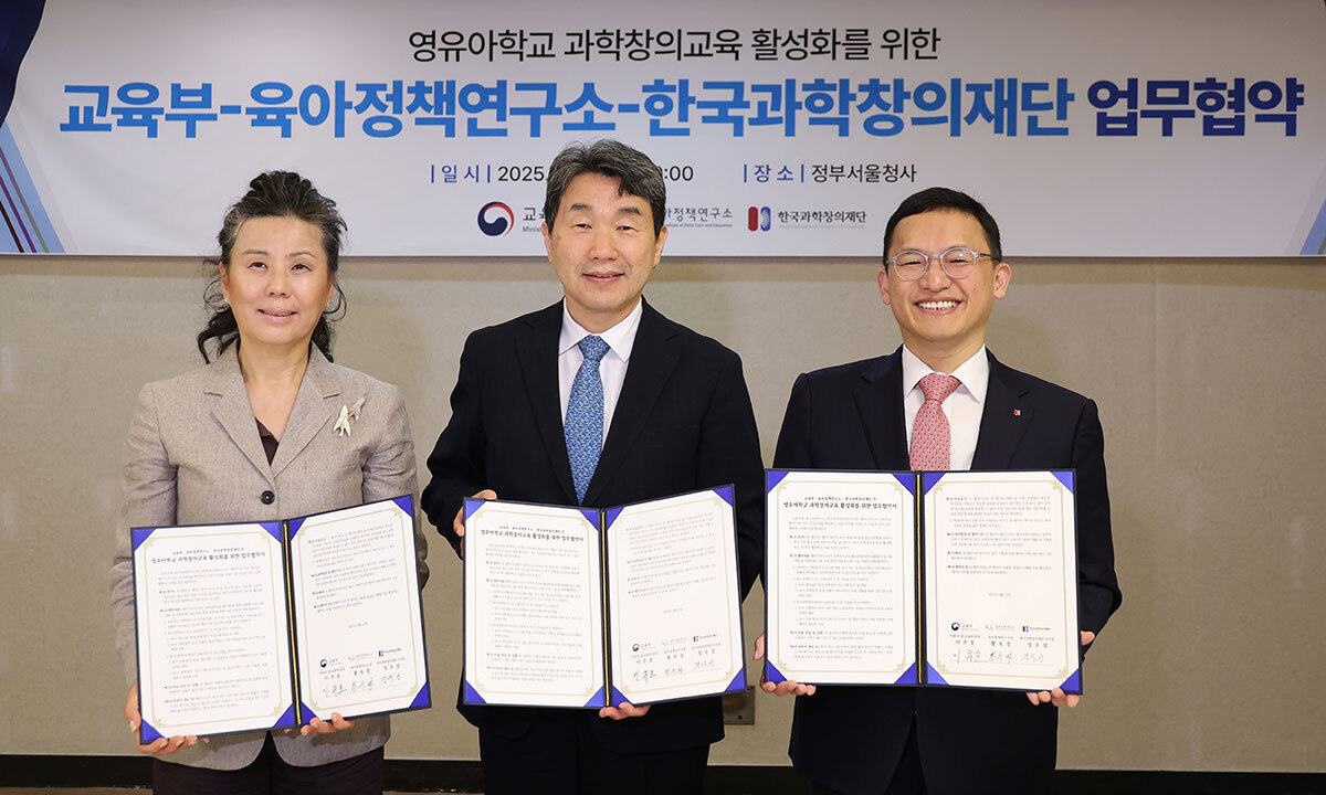 교육부·과학재단·육아정책硏 MOU 입력 : 2025-04-23 23:17:00 수정 : 2025-04-23 21:19:04 교육부 제공 구글 네이버 유튜브 이주호 부총리 겸 교육부 장관(가운데)이 23일 정부서울청사에서 정우성 한국과학창의재단 이사장(오른쪽), 황옥경 육아정책연구소장과 영유아학교 과학창의교육 활성화를 위한 업무협약을 맺고 기념사진을 찍고 있다. 기자 Copyright ⓒ 세계일보. 무단 전재 및 재배포 금지 세계일보