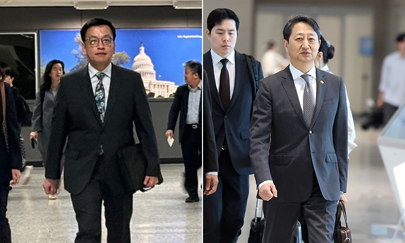 협상 테이블 앉는 최상목·안덕근 입력 : 2025-04-23 17:26:26 수정 : 2025-04-24 00:03:29 구글 네이버 유튜브 미국 워싱턴에서 24일(현지시간) 열리는 도널드 트럼프 행정부와의 2+2 통상 협의에 참석하는 최상목 경제부총리 겸 기획재정부 장관(왼쪽)이 22일 덜레스 국제공항을 통해 미국으로 입국하고 있다. 안덕근 산업통상부 장관은 인천공항을 통해 출국했다. <뉴시스>뉴시스> Copyright ⓒ 세계일보. 무단 전재 및 재배포 금지 뉴시스