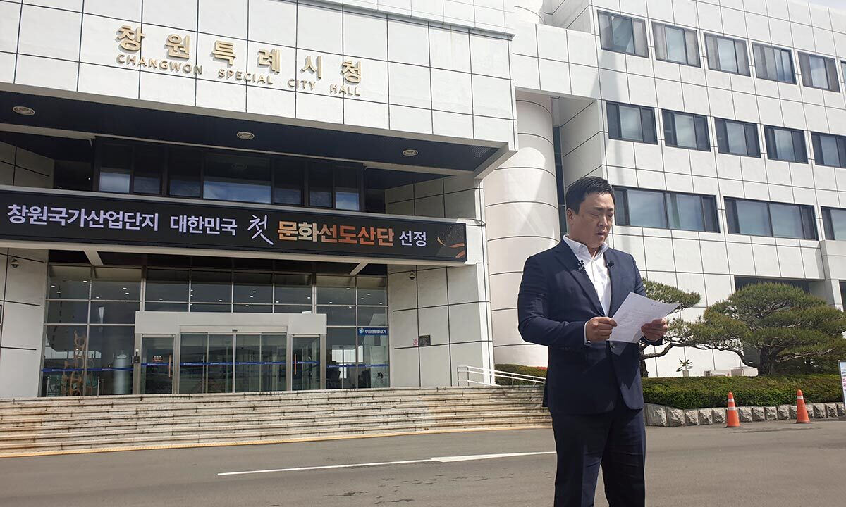 기자회견에 앞서 이 전 대변인은 원래 창원시청 프레스센터에서 기자회견이 예정돼 있었는데 갑자기 취소돼 시청 화단 앞에서 기자회견을 진행하게 됐다고 설명했다.