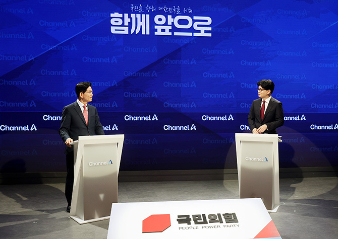 반면 한동훈 후보는 "주변에서 자꾸 (출마를) 얘기하면서 당에 관심이 집중돼야 할 경선을 흐려지게 하는 것은 적절치 않다"고 밝혔다.