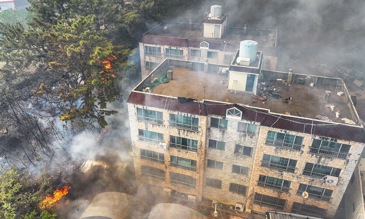 산불이 발생한 곳에서 직선거리로 2㎞ 거리 이내인 조야동에는 민가가 위치해 있다.