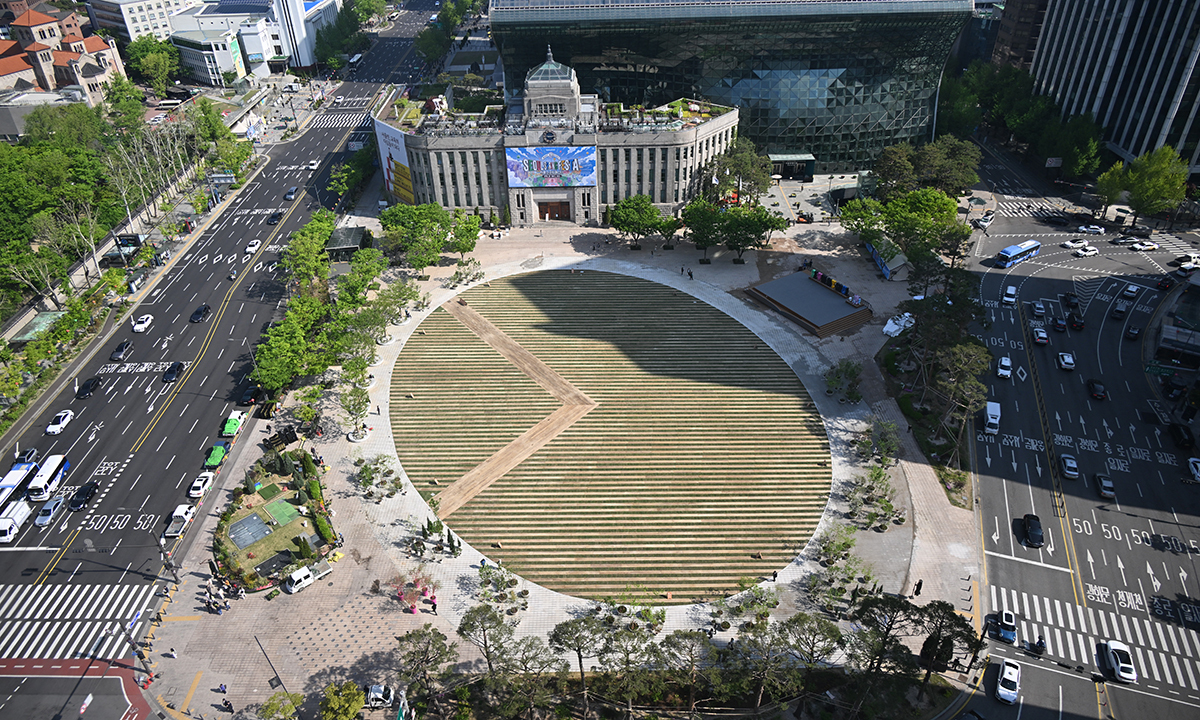 광장 바닥도 자연친화적으로 바뀌었다. 다양한 행사로 훼손과 복구가 반복됐던 잔디는 기후 특성에 맞는 난지형잔디로 교체됐다. 시는 잔디 사이에 목재길을 조성해 잔디 보호와 경관도 개선했다. 21년간 답압(踏壓·밟아 눌러 토양이 침식되고 단단하게 눌린 현상) 등으로 불량했던 배수체계 등 시설도 정비해 잔디를 더욱 효율적으로 관리할 계획이다. 시는 이번 개선으로 연간 약 331.92t의 탄소저감 효과도 발생할 것으로 전망했다.