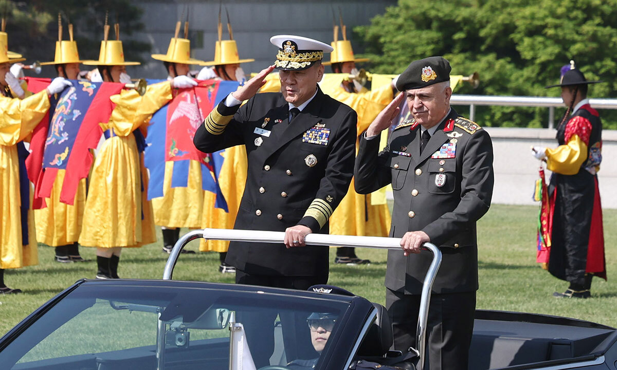 방한 튀르키예 총사령관 만난 합참의장 입력 : 2025-04-28 21:01:39 수정 : 2025-04-28 21:01:38 구글 네이버 유튜브 김명수 합참의장(왼쪽)은 28일 서울 용산 합참청사에서 메틴 규락 튀르키예 총사령관(육군 대장)을 만나 양국 군사협력 강화방안을 논의했다고 합참이 밝혔다. 사진은 김 의장과 규락 튀르키예 총사령관이 서울 용산 국방부 연병장에서 열린 환영 의장 행사에 참석해 의장대를 사열하는 모습. <뉴시스>뉴시스> Copyright ⓒ 세계일보. 무단 전재 및 재배포 금지 뉴시스 박수찬