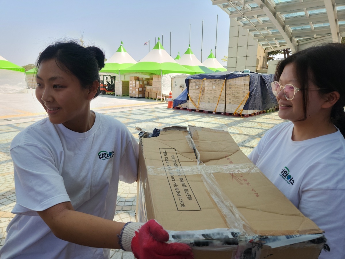 그룹의 공식 대학생 봉사단 ‘다인어스’는 지난 26일 안동 다목적체육관에 마련된 대피소에서 식사 제공과 물품 정리 등 봉사활동을 진행했다.