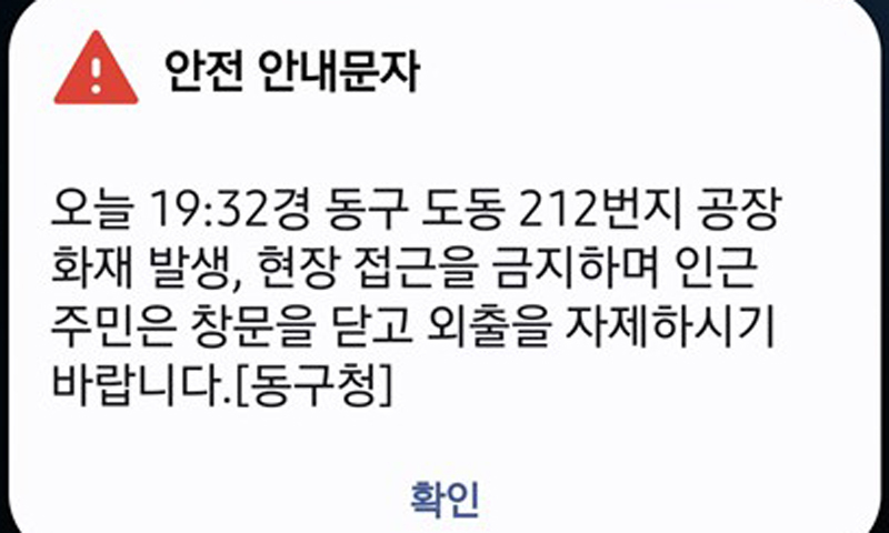불이 나자 소방당국은 주민에게 '창문을 닫고 외출을 자제하라'는 안전안내 문자를 발송하기도 했다.