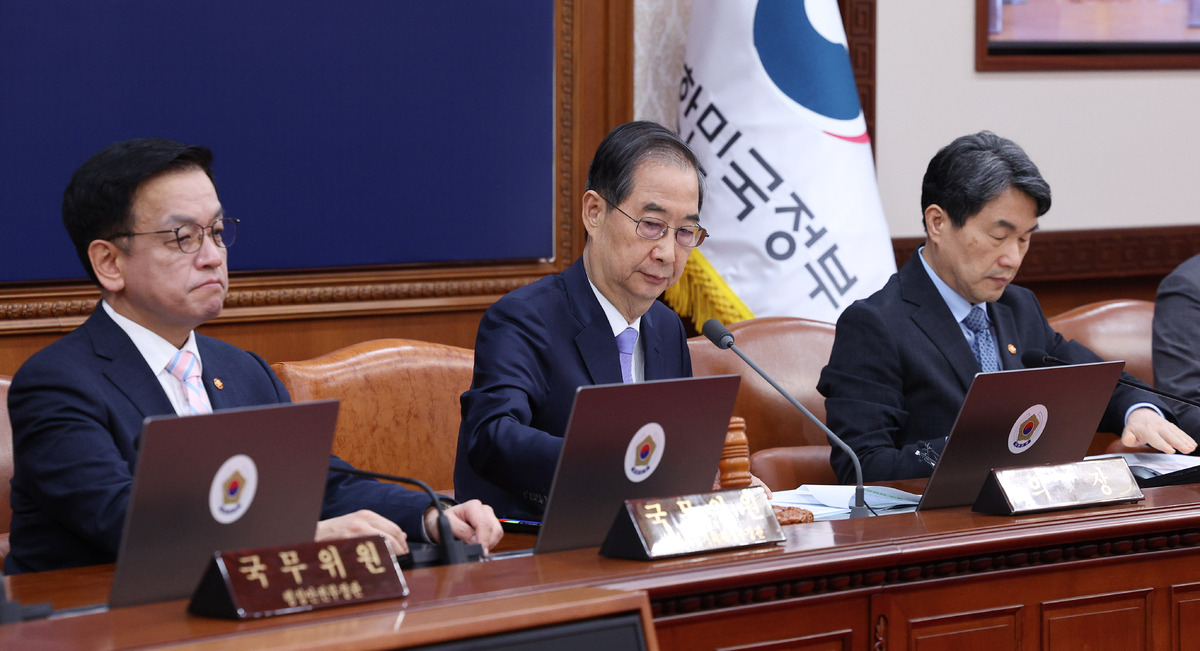 한덕수 대통령 권한대행 국무총리가 29일 서울 종로구 정부서울청사에서 열린 국무회의에서 모두발언을 하고 있다.