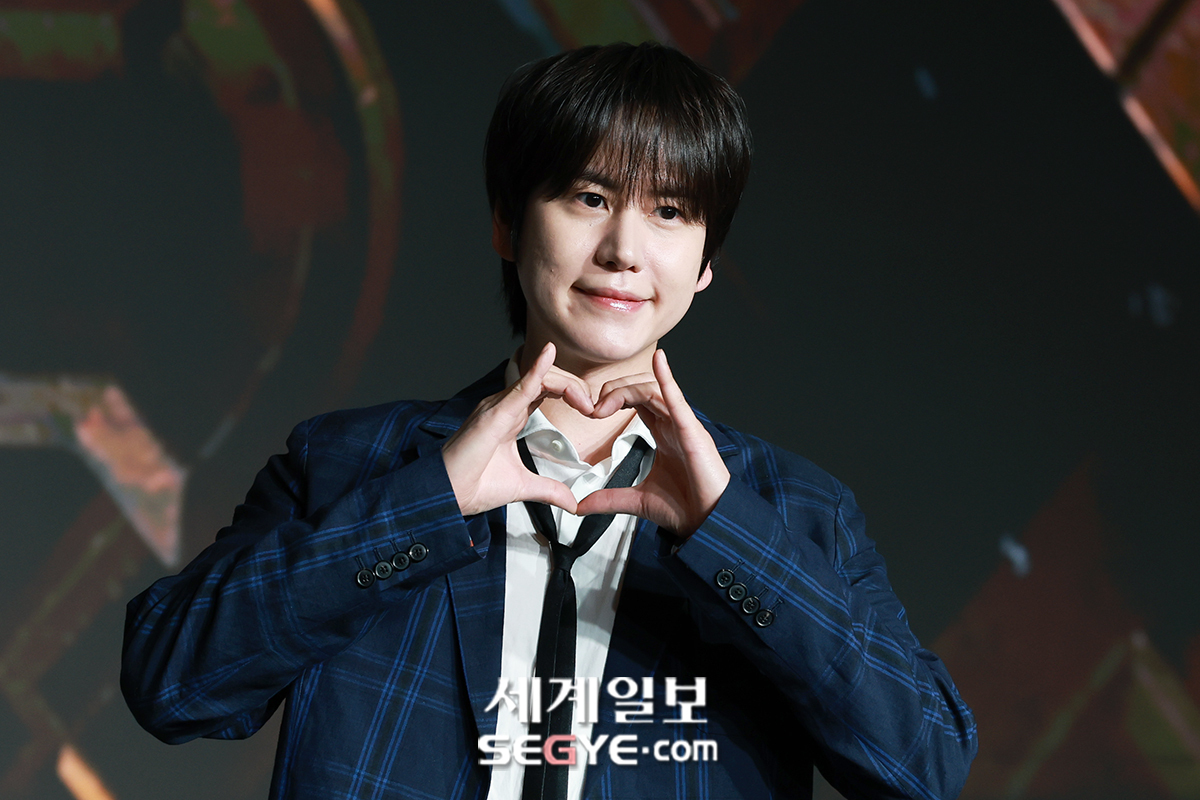 가수 규현이 29일 오전 서울 마포구 호텔 나루 엠갤러리에서 열린 넷플릭스 시리즈 ‘데블스 플랜: 데스룸’ 제작발표회에 참석해 포즈를 취하고 있다.