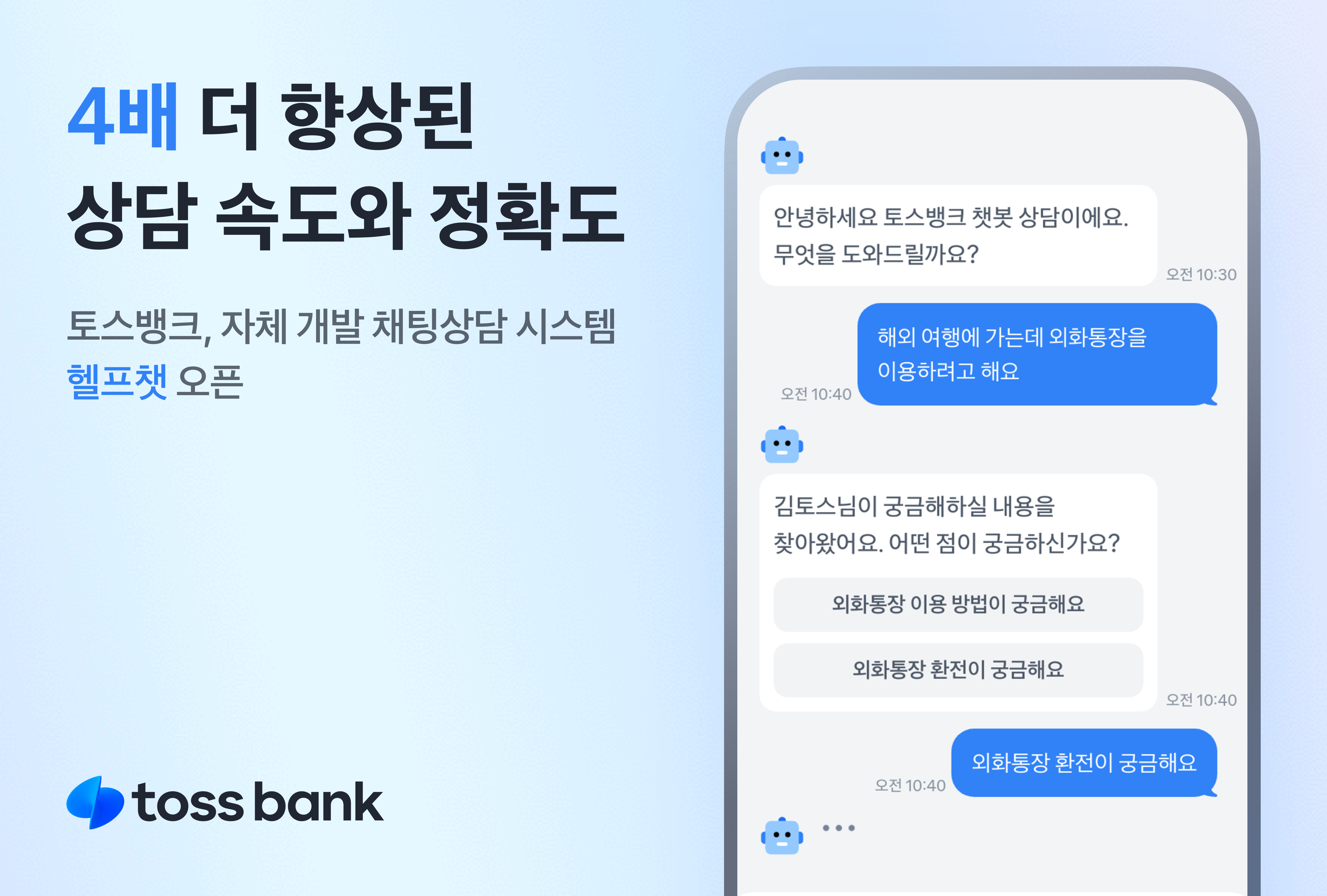 토스뱅크가 고객 상담을 위한 자체 채팅 시스템 ‘헬프챗’을 도입했다. 기존 외부 솔루션을 활용하던 방식에서 벗어나 직접 시스템을 개발하며 상담 응답 속도와 실시간 대응 능력을 끌어올렸다는 설명이다.