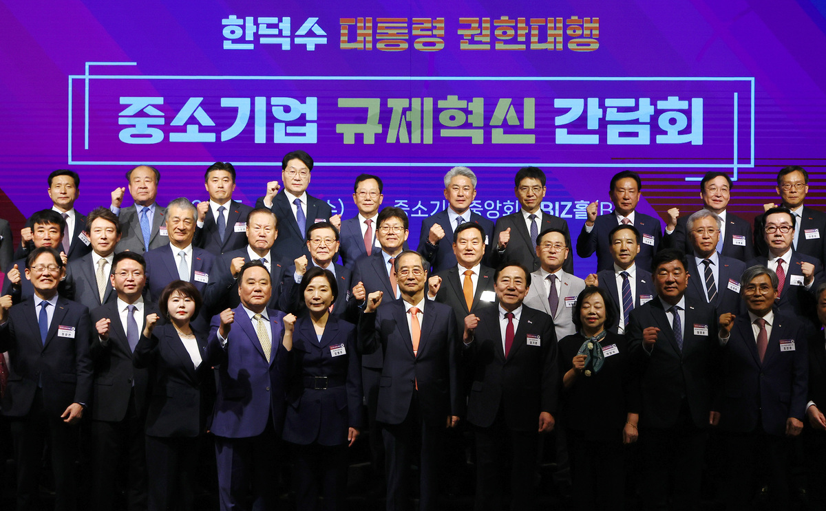 한덕수 대행, 출마 앞두고 ‘경제행보’ 입력 : 2025-04-30 18:27:40 수정 : 2025-04-30 18:27:39 남정탁 기자 구글 네이버 유튜브 한덕수 대통령 권한대행 국무총리가 30일 서울 영등포구 중소기업중앙회에서 열린 ‘중소기업 규제혁신 현장 소통 간담회’에서 참석자들과 기념촬영하고 있다. 대통령실사진기자단 중앙일보 김현동 2025.04.30 대통령 권한대행 한덕수 국무총리(앞줄 가운데)가 30일 서울 영등포구 중소기업중앙회에서 열린 ‘중소기업 규제혁신 간담회’에 참석해 참석자들과 기념사진을 촬영하고 있다. 남정탁 기자 Copyright ⓒ 세계일보. 무단 전재 및 재배포 금지 세계일보 남정탁