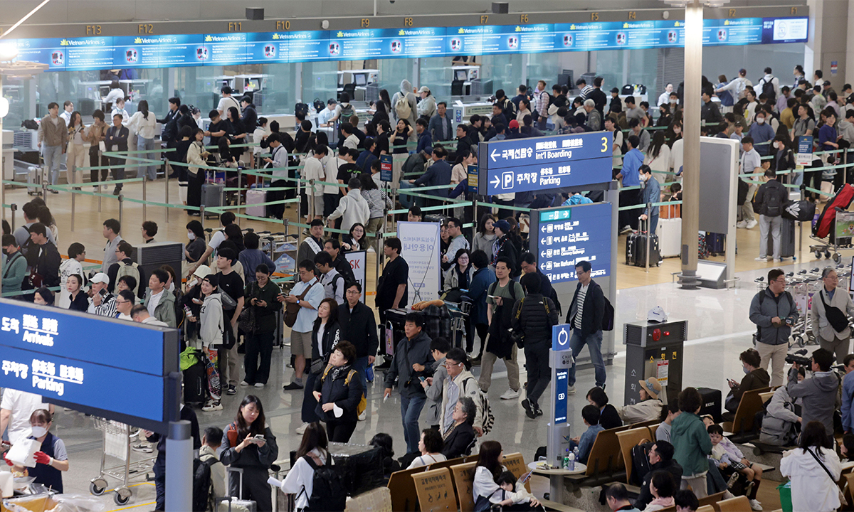 연휴 첫날 북적이는 인천공항 입력 : 2025-05-01 21:05:28 수정 : 2025-05-01 21:05:28 구글 네이버 유튜브 징검다리 황금연휴가 시작된 1일 인천국제공항 제1여객터미널 출국장에서 승객들이 탑승 수속을 위해 줄을 서고 있다. 인천국제공항공사는 연휴 기간 인천공항 이용객이 하루 평균 21만명에 이를 것으로 전망했다. <연합>연합> Copyright ⓒ 세계일보. 무단 전재 및 재배포 금지 연합