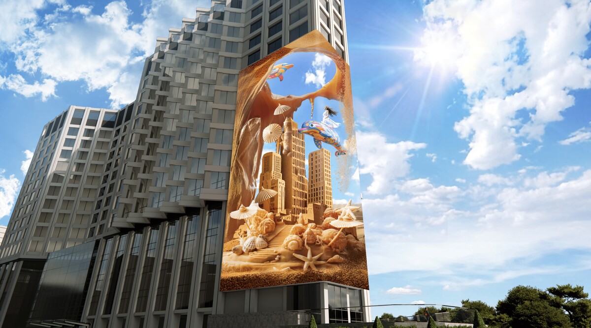 해운대해수욕장 입구에 자리한 그랜드조선 부산이 호텔 벽면에 설치한 가로 25m, 세로 31m, 면적 788㎡의 디지털 광고판이다.