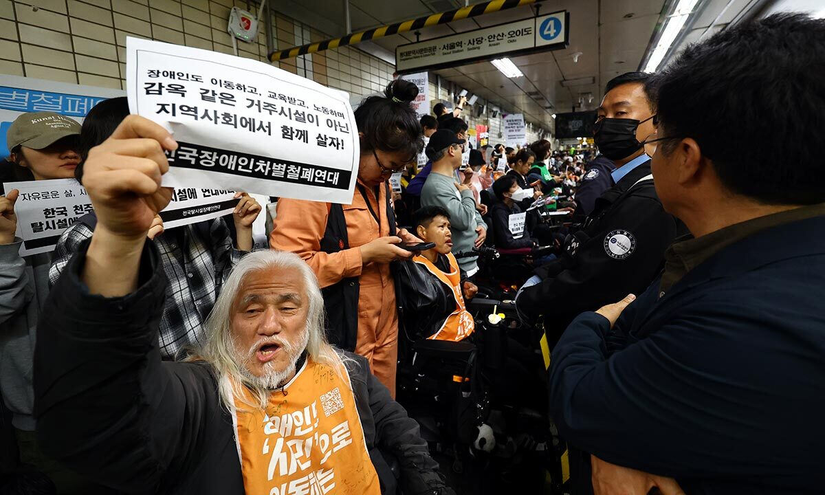 전국장애인차별철폐연대(전장연)가 2일 예고했던 지하철 탑승 시위 ‘출근길 지하철 탑니다’를 유보하고 분산 탑승해 국회로 이동했다. ‘장애인 권리 보장’을 이유로 출근길 지하철 운행을 지연시키는 선전전에 나섰으나 일부 대선 후보 캠프가 전장연과 만나겠다는 의사를 내비치면서 큰 혼란 없이 시위가 마무리됐다.