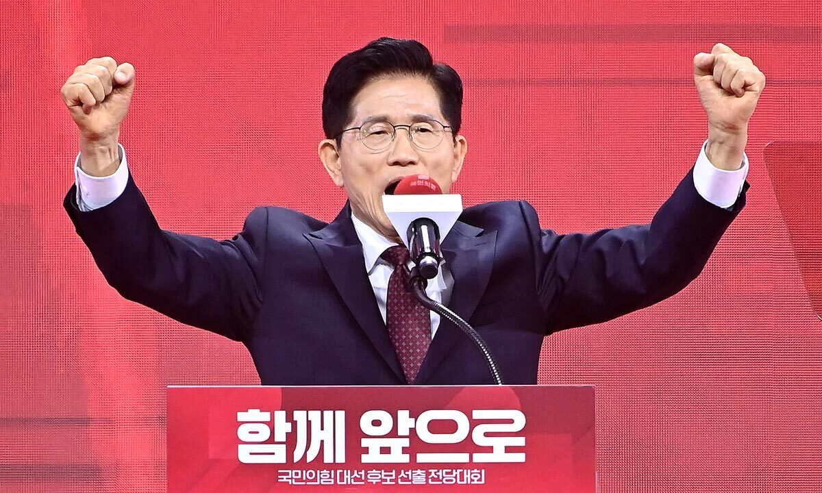 이후 연초부터 각종 여론조사에서 범보수 대권 주자로 급부상했고, 이날 경선에서 56.53%의 득표율로 한동훈 후보를 누르고 당 후보로 선출됐다. 김 후보는 줄곧 윤 전 대통령 탄핵에 반대 입장을 고수해왔다.