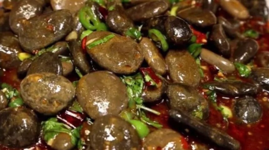 미국 CNN이 소개한 바에 따르면, 노점상의 상인들은 철판에 자갈을 올려 달군 뒤 자갈 위에 칠리 소스로 보이는 액체를 붓고 그 위에 마늘과 다진 고추를 섞어 볶는다. 요리용 자갈은 표면이 매끈한 둥근 돌로 입안에 쏙 들어갈 수 있는 한 입 크기다. 그런 다음 손바닥 크기만 한 상자에 볶은 돌 요리를 담아 손님에게 건넨다. 이 요리는 16위안(약 2900원)정도에 팔린다고 한다.