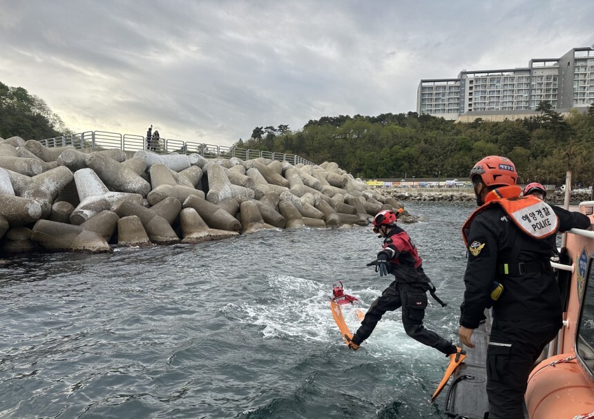 구조대와 연안 구조정 등을 출동시킨 해경은 방파제 추락자가 60대 A씨 부부인 것을 확인하고 1명씩 차례로 밀어 올려 40여분 만인 오후 6시 50분쯤 구조했다.