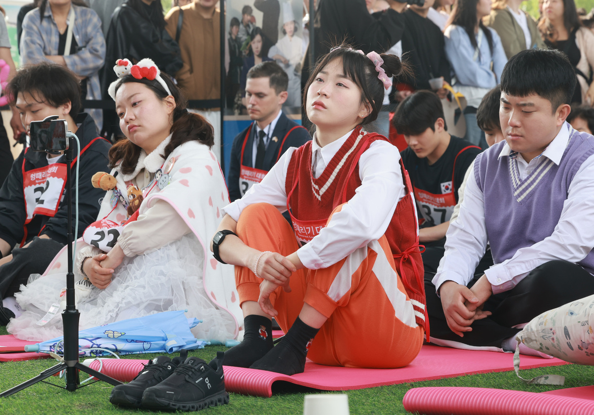 첫 탈락자는 대회 시작 18분 만인 오후 4시35분쯤 나왔다. 기권을 선언한 라마 분장의 유튜버 ‘김라마’는 “1시간은 버틴 줄 알았다”며 퇴장했다.