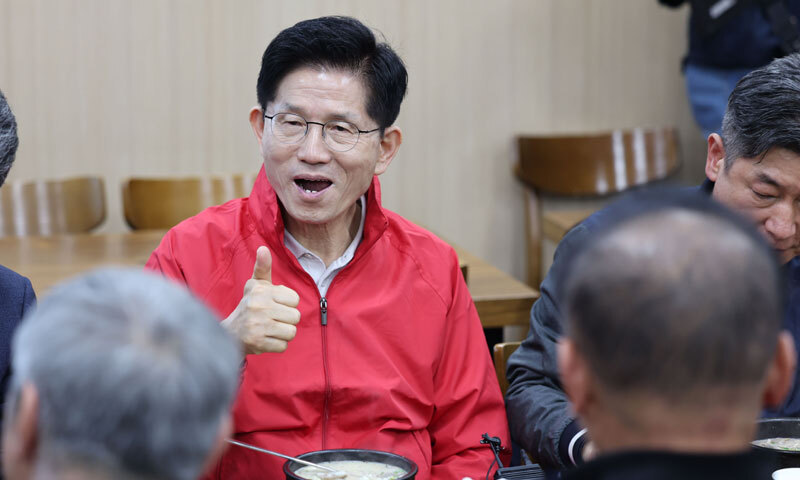 이어 김 후보는 현금으로 양상추, 파 등을 샀고, 상인들을 향해 "사랑한다"고 말하며 머리 위로 손을 올려 하트를 만들어 보였다.