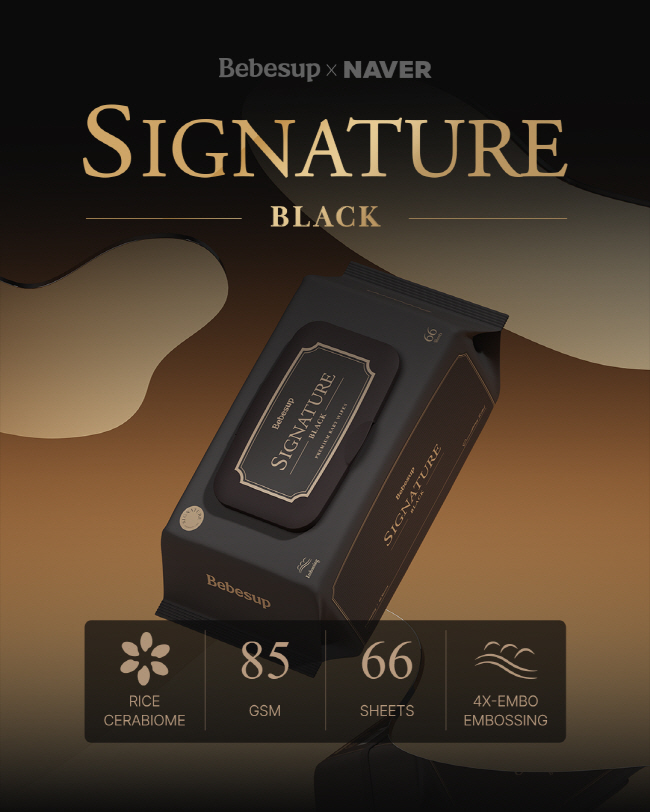 이번 제품은 1995년부터 시작된 아기피부연구소의 30년 연구 노하우를 바탕으로, 물티슈의 기본이 되는 ‘물’부터 성분, 안전성까지 더 엄격한 기준을 적용해 탄생했다. ‘시그니처 블랙’은 베베숲에서 최상위 라인으로, 진정한 프리미엄을 경험할 수 있도록 설계됐다.