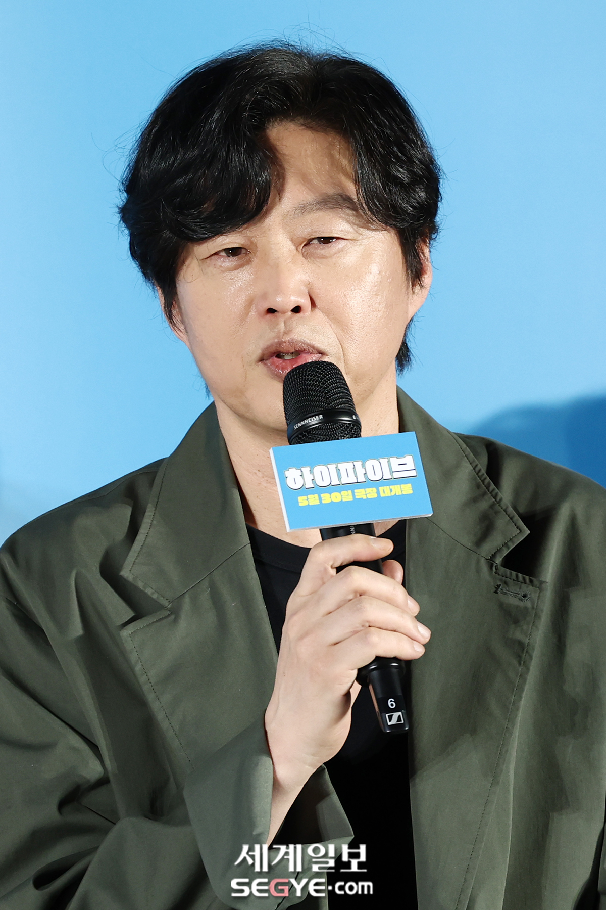 배우 김희원이 12일 서울 롯데시네마 건대점에서 열린 영화 ’하이파이브’의 제작보고회에 참석해 인사말을 하고 있다.