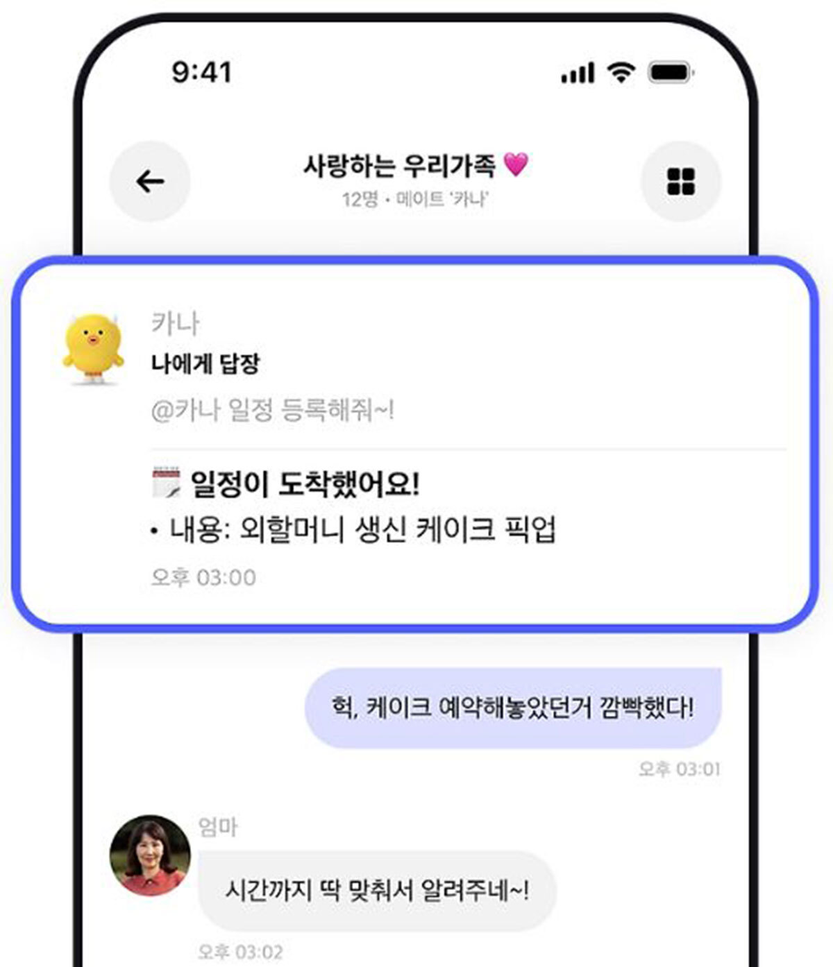 이용자는 개인 AI 메이트인 ‘나나’와 대화를 나누고, 그룹 채팅방에서는 그룹 AI 메이트인 ‘카나’와 상호작용할 수 있다. 그룹방에서 알고 싶은 정보가 생기면 대화 중 귓속말 모드를 통해 나나와 대화를 나누며 정보를 확인하거나, 러닝 동호회 방에서 마라톤대회 일정과 관련된 얘기를 나누면 카나가 일정을 자동으로 등록한 뒤 추후 일정을 상기해 주는 밀착 AI 서비스인 셈이다.
