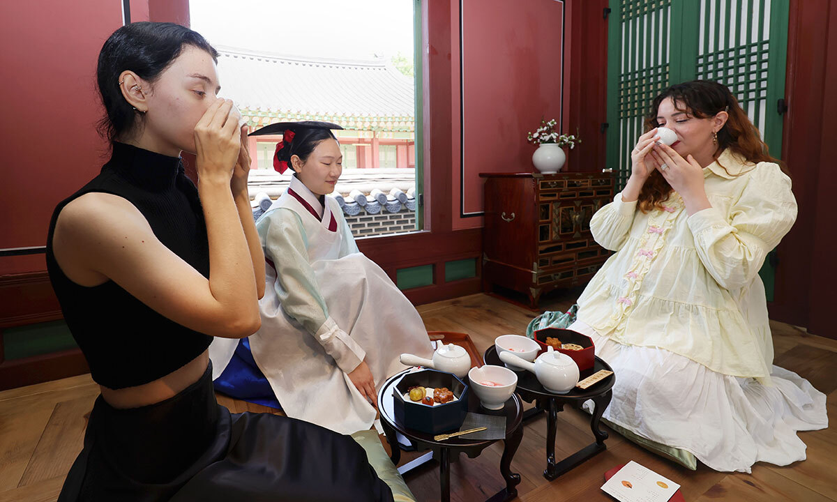 12일 서울 종로구 창덕궁 궐내각사 약방에서 열린 ‘2025년 창덕궁 약다방’ 사전 행사에서 외국인들이 전통다과와 한방차를 시식하고 있다. 약방은 조선시대 내의원과 함께 궁중 치료를 위해 왕실의 약재를 보관하고 관리하던 곳으로 국가유산청은 매년 조선 왕실의 약재와 약방을 현대적으로 재해석한 체험 프로그램 ‘창덕궁 약다방’을 열고 있다. 올 상반기 창덕궁 약다방 행사는 다음달 4∼26일까지다. 참가자 모집은 추첨제로 진행하며, 12일부터 18일 오후 2시까지 티켓링크를 통해 응모할 수 있다.