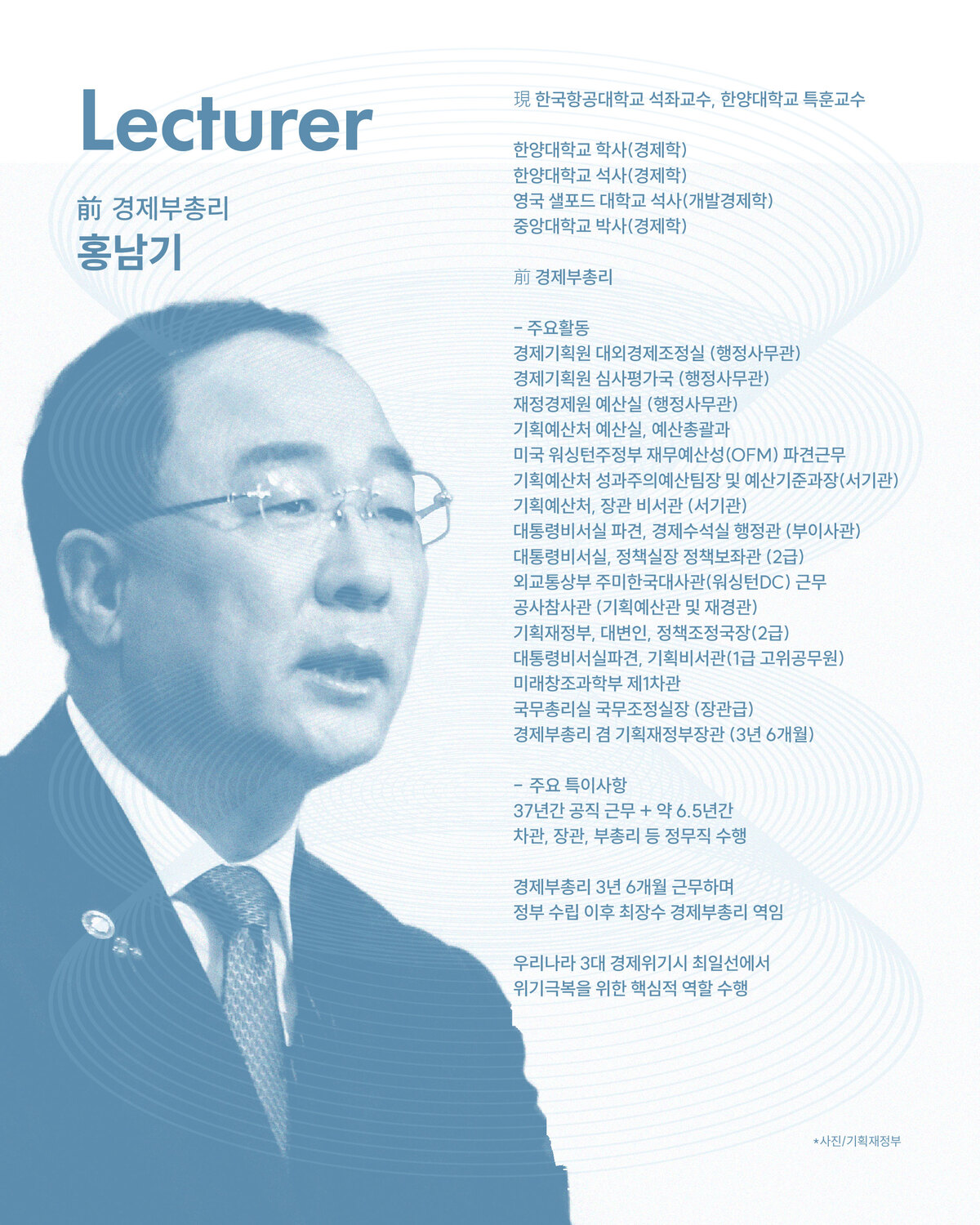 이번 강의 주제는 ‘한국 경제의 해법과 사회적 자본’이다. 홍 석좌교수는 정체 중인 성장률과 심화하는 양극화, 디지털 전환, 인구구조 변화 속에서 우리가 나아가야할 방향을 제시한다. 아울러 신뢰와 연대라는 가치가 어떻게 새로운 성장 조건이 될 수 있는지를 조망한다.