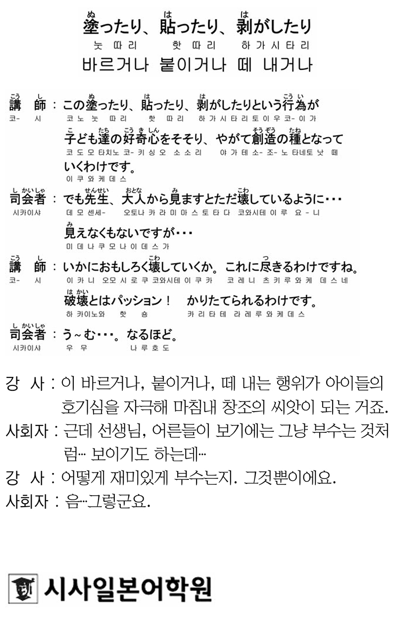 [시사일본어학원의 초단기 일본어 회화] 바르거나 붙이거나 떼 내거나 입력 : 2025-05-13 18:25:05 수정 : 2025-05-13 18:25:04 구글 네이버 유튜브 Copyright ⓒ 세계일보. 무단 전재 및 재배포 금지 세계일보