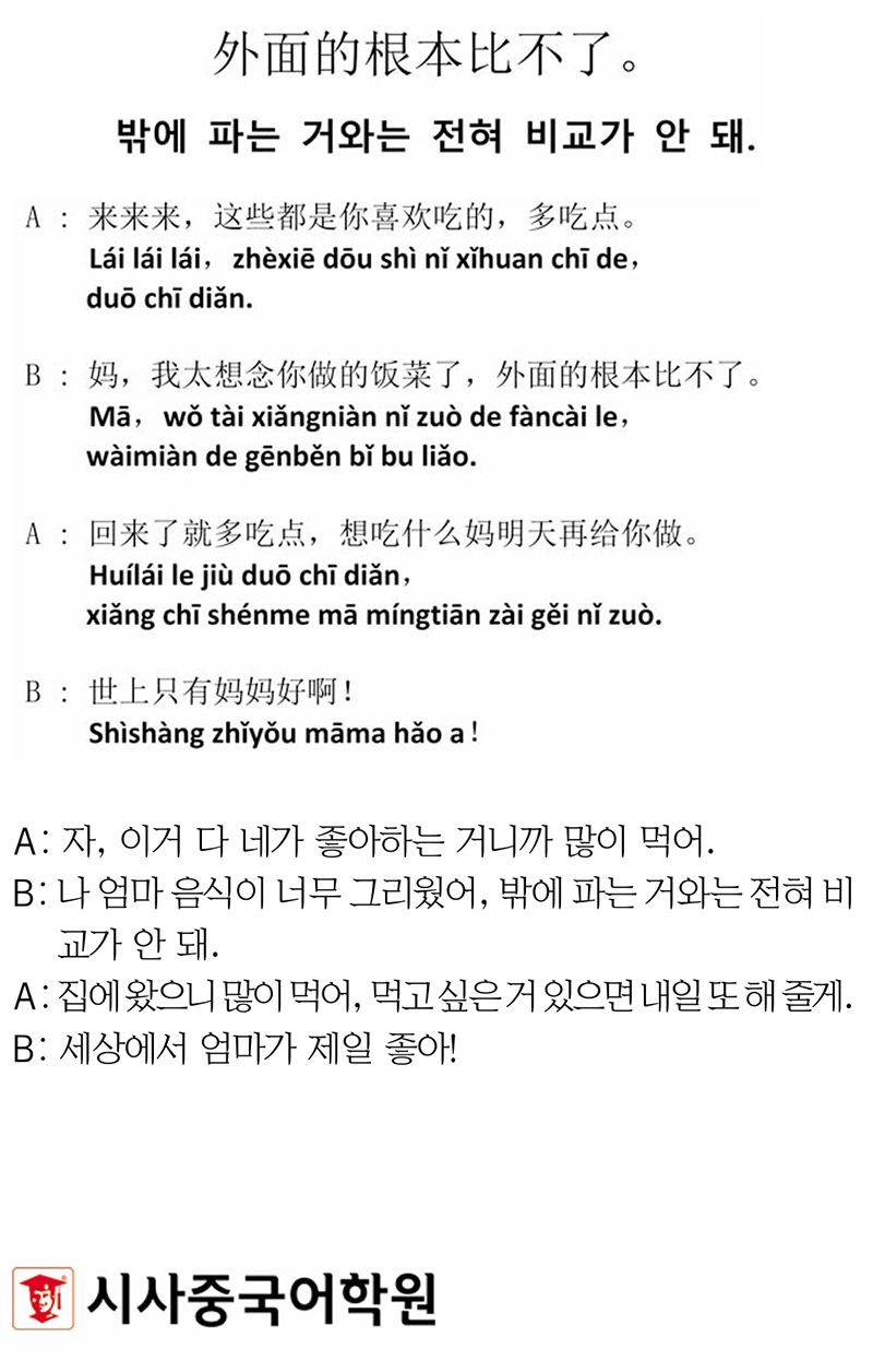 [시사중국어학원의 리얼 중국어 회화] 밖에 파는 거와는 전혀 비교가 안 돼. 입력 : 2025-05-13 18:24:43 수정 : 2025-05-13 18:24:42 구글 네이버 유튜브 Copyright ⓒ 세계일보. 무단 전재 및 재배포 금지 세계일보