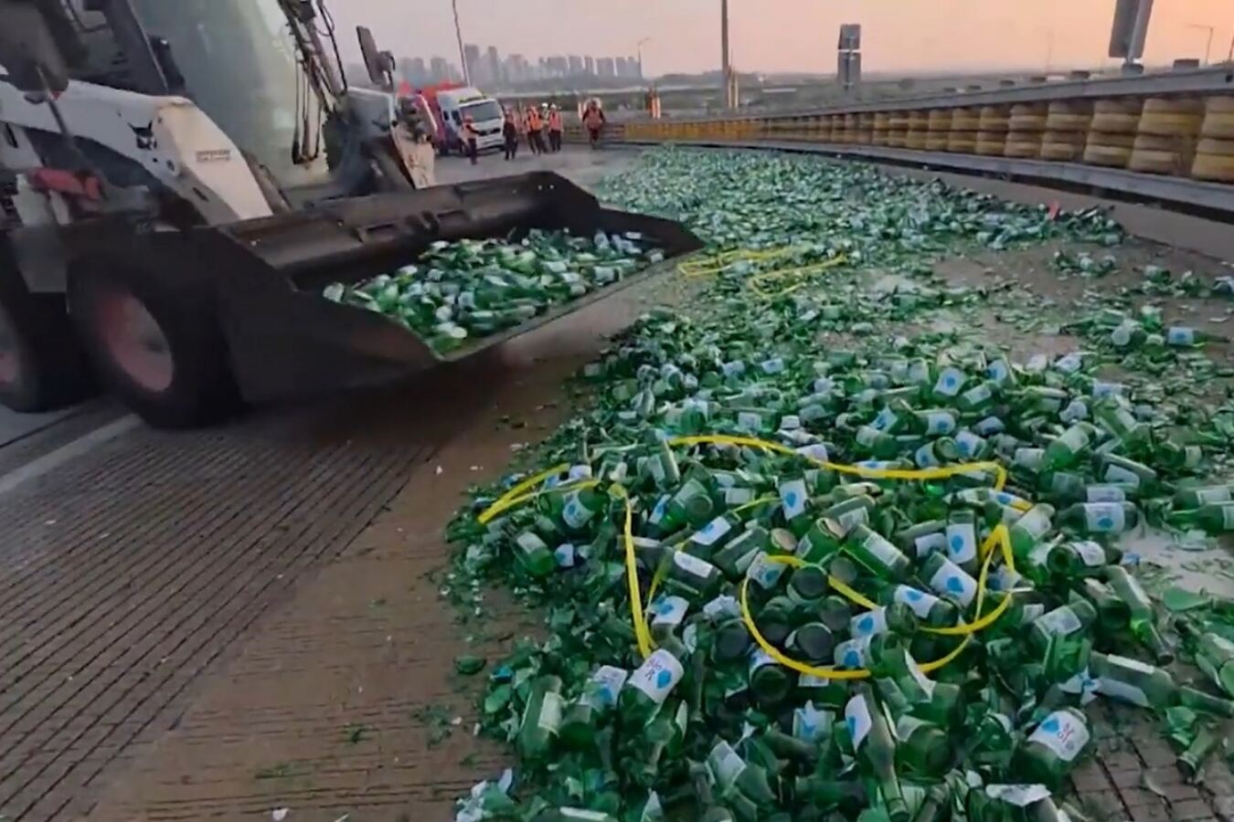 도공은 신고를 받고 긴급 출동해 현장의 차량 통행을 전면 통제하고, 중장비를 동원해 깨진 소주병 등을 치웠다. 차량 통행은 사고 발생 50여분 만인 이날 오후 6시30분쯤 재개됐다.