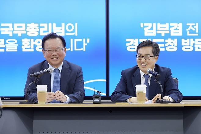 14일 경기도에 따르면 김 지사와 김 전 총리는 전날 오전 수원시 광교신도시의 도청사에서 주요 실·국장들과 함께 차담회를 가졌다. 두 사람의 만남은 지난달 김 지사가 김 전 총리의 부친상을 조문하기 위해 서울 아산병원 장례식장을 방문한 뒤 처음이다. 김 전 총리의 경기도청 공식 방문 역시 2018년 행정안전부 장관으로 재직할 때 이후 7년여 만이다.