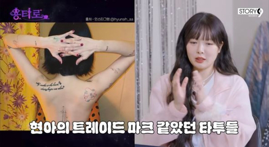 1년 전부터 타투를 지우기 시작했다는 현아는 "전신에 타투가 굉장히 많이 있어서 지우는 데 시간이 걸린다"고 했다.